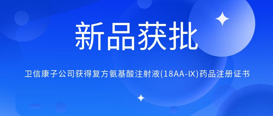 新品獲批 衛(wèi)信康子公司獲得復(fù)方氨基酸注射液(18AA-Ⅸ)《藥品注冊(cè)證書》