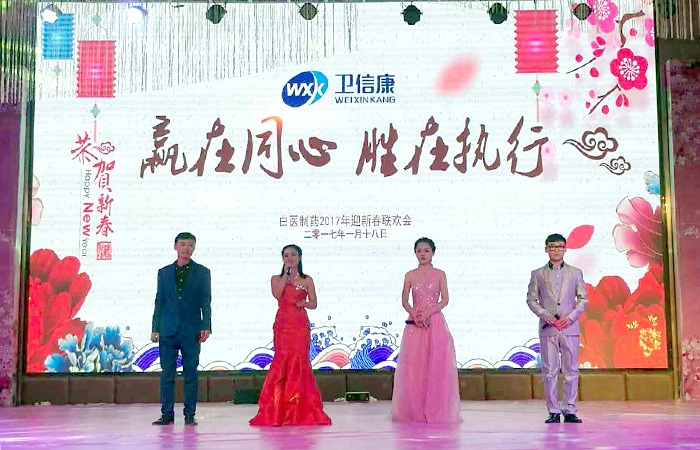 晚宴時(shí)分,總部張總攜衛(wèi)信康管理團(tuán)隊(duì)到臺(tái)前邀大家共同舉杯,翁總、陳總等公司領(lǐng)導(dǎo)也為大家獻(xiàn)上新春賀詞,本次會(huì)議在活躍的氛圍中取得了圓滿成功。此次晚會(huì)不僅對(duì)衛(wèi)信康子公司白醫(yī)制藥2016年的整體工作進(jìn)行了總結(jié),同時(shí)對(duì)2017年的工作戰(zhàn)略進(jìn)行了初步規(guī)劃,為白醫(yī)制藥新的一年工作帶來了全新的開始。