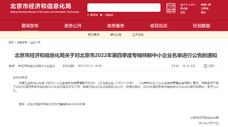 衛(wèi)信康全資子公司榮獲北京市“專(zhuān)精特新”企業(yè)稱(chēng)號(hào)!