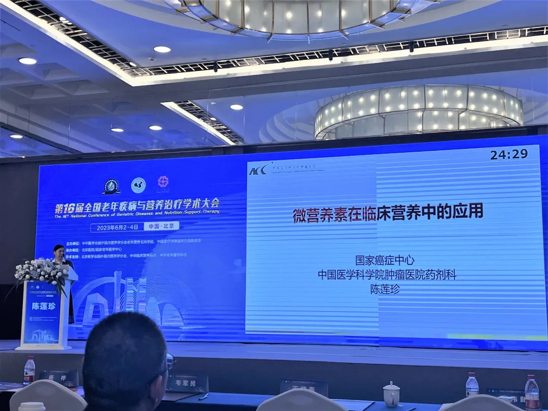 衛(wèi)信康醫(yī)藥攜衛(wèi)衡素?多種微量元素注射液、衛(wèi)素齊?注射用多種維生素(13)(10/3)、衛(wèi)苷檸?復(fù)方氨基酸注射液(20AA)等多個產(chǎn)品參加了此次大會,并有幸邀請到國家癌癥中心、中國醫(yī)學(xué)科學(xué)院腫瘤醫(yī)院藥劑科主任藥師陳蓮珍教授做《微營養(yǎng)素在臨床營養(yǎng)中的應(yīng)用》的主題分享。