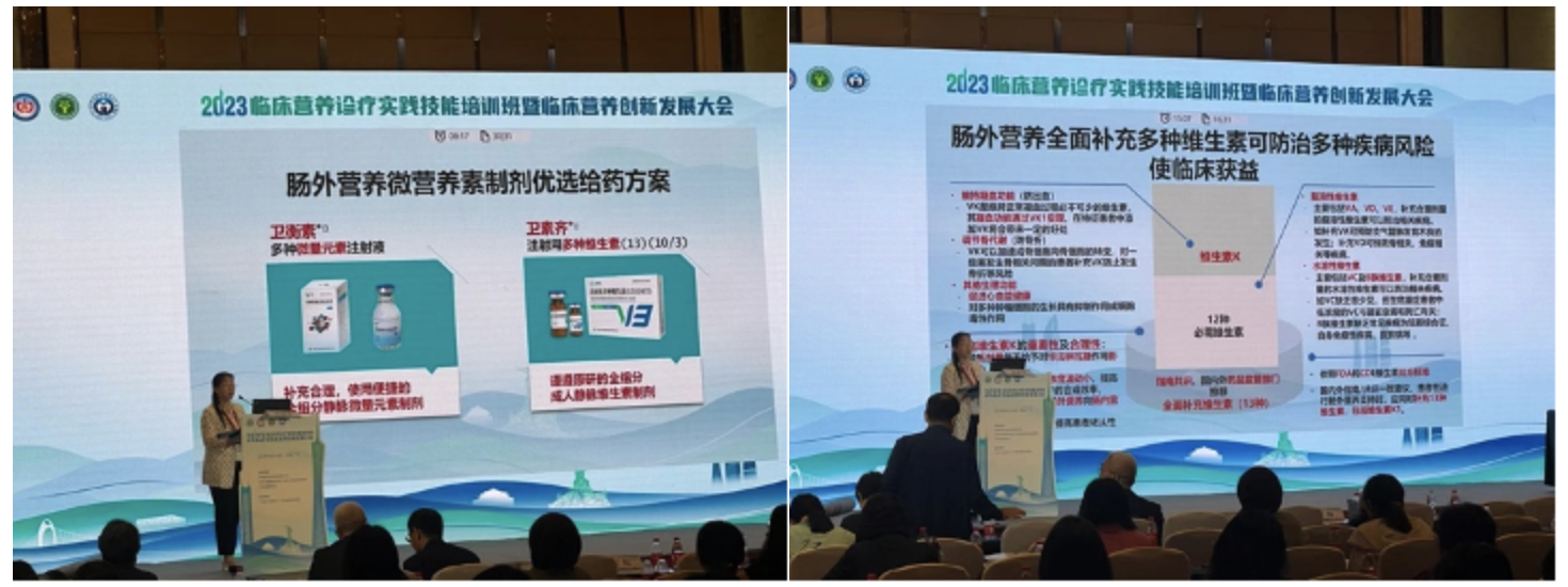 衛(wèi)信康醫(yī)藥攜衛(wèi)衡素??多種微量元素注射液、衛(wèi)素齊??注射用多種維生素(13)(10/3)、衛(wèi)苷檸??復(fù)方氨基酸注射液(20AA)等多款產(chǎn)品亮相本次盛會(huì),中國(guó)人民解放軍總醫(yī)院第一醫(yī)學(xué)中心劉英華教授分享《成人腸外營(yíng)養(yǎng)支持方案中微營(yíng)養(yǎng)素的應(yīng)用》。